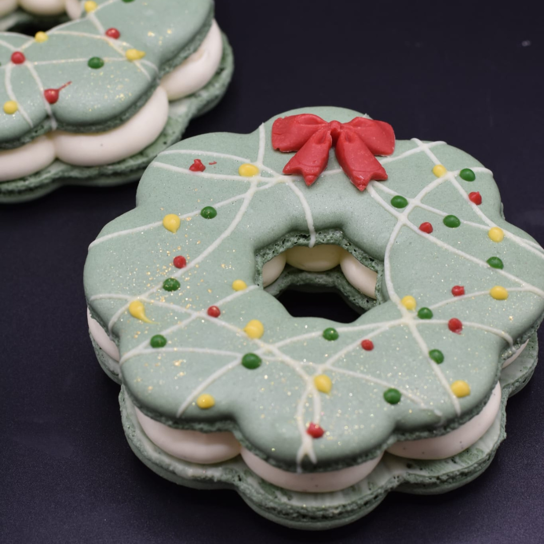 👉 Format unique : 8 macarons d'environ 3 cm de diamètre assemblés en une couronne d'environ 12 cm de diamètre. Entre 4 et 8 parts en fonction de votre gourmandise.